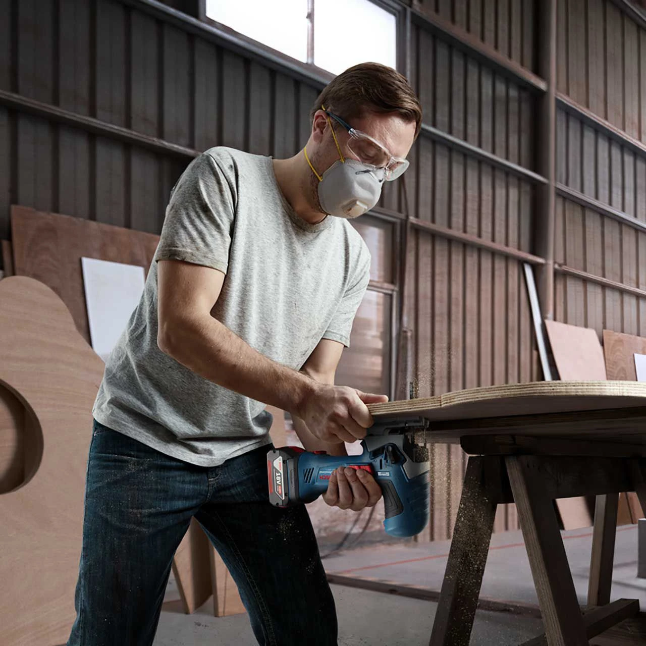 Akku-Stichsäge GST 18V-125 S. Das robuste Design und der kraftvolle bürstenlose Motor der GST 18V-125 B Professional (mit Stabgriff) sorgen für eine hervorragende Laufzeit und längere Lebensdauer des Werkzeugs. Die Akku-Stichsäge mit einem optimalen Preis-Leistungsverhältnis in ihrem Segment ist ein zuverlässiger Problemlöser für alle Anwendungen. Die GST 18V-125 S Professional bietet eine einfache Lösung, die auf wichtige Kernfunktionen wie SDS-Sägeblatthalter, LED, 4-stufigen Pendelhub, Staubblasfunktion und Drehzahlvorwahl fokussiert ist. Diese Akku-Stichsäge eignet sich ideal für Rund- und Querschnitte in Massivholz, Spanplatten und Holzverbundwerkstoffen sowie in dickeren oder härteren Materialien. Mit Adapter kann sie mit Führungsschienen verwendet werden. Das Werkzeug ist kompatibel mit externer Staubabsaugung und allen Bosch Professional 18V-Akkus und -Ladegeräten (Professional 18V System). Die Fußplatte der GST 18V-125 S Professional kann bis auf einen Winkel von 45° für Neigungsschnitte eingestellt werden. Das Werkzeug wird mit einer abnehmbaren Kunststoff-Abdeckhaube für den Schutz von empfindlichen Werkstücken geliefert.