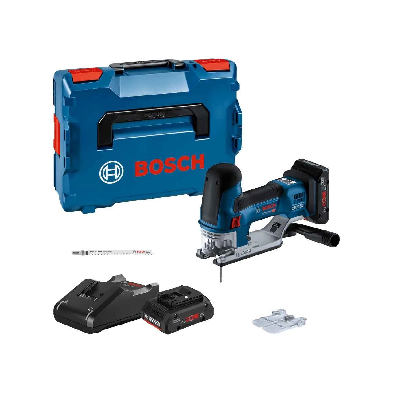 BOSCH Akku-Stichsäge GST 18V-155 SC, 2 X ProCore 4.0 Ah + GAL 18V-40 In L-BOXX