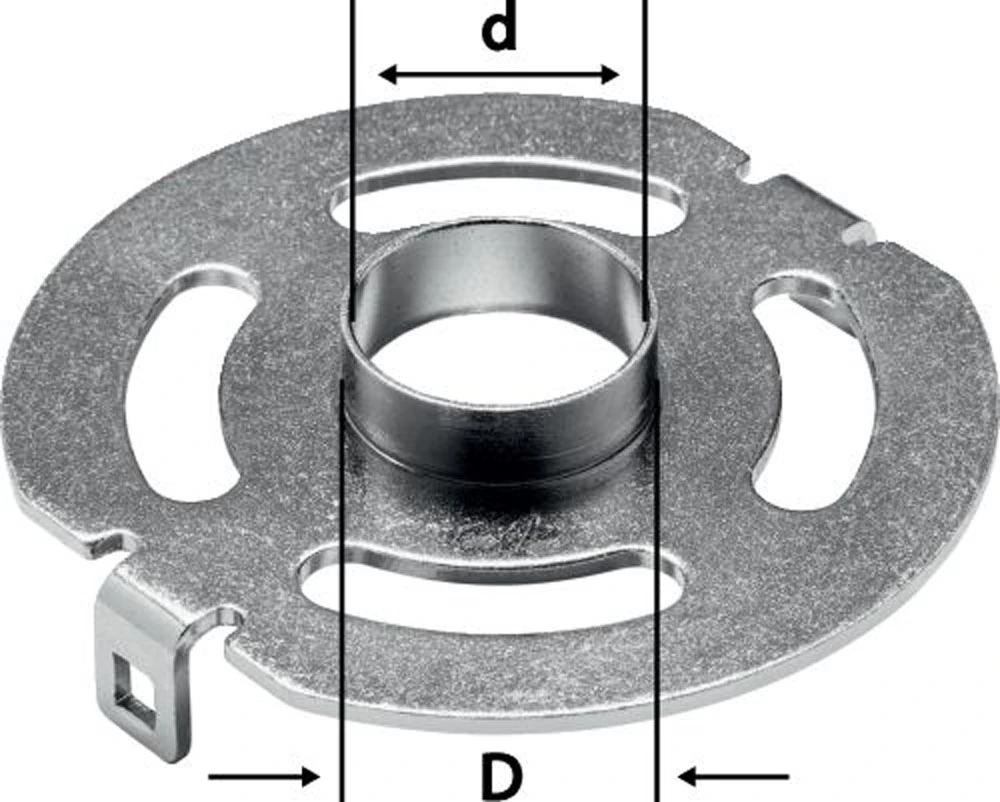 - Kopierring zum abtasten von Frässchablonen, werkzeuglos in die Oberfräse einsetzbar