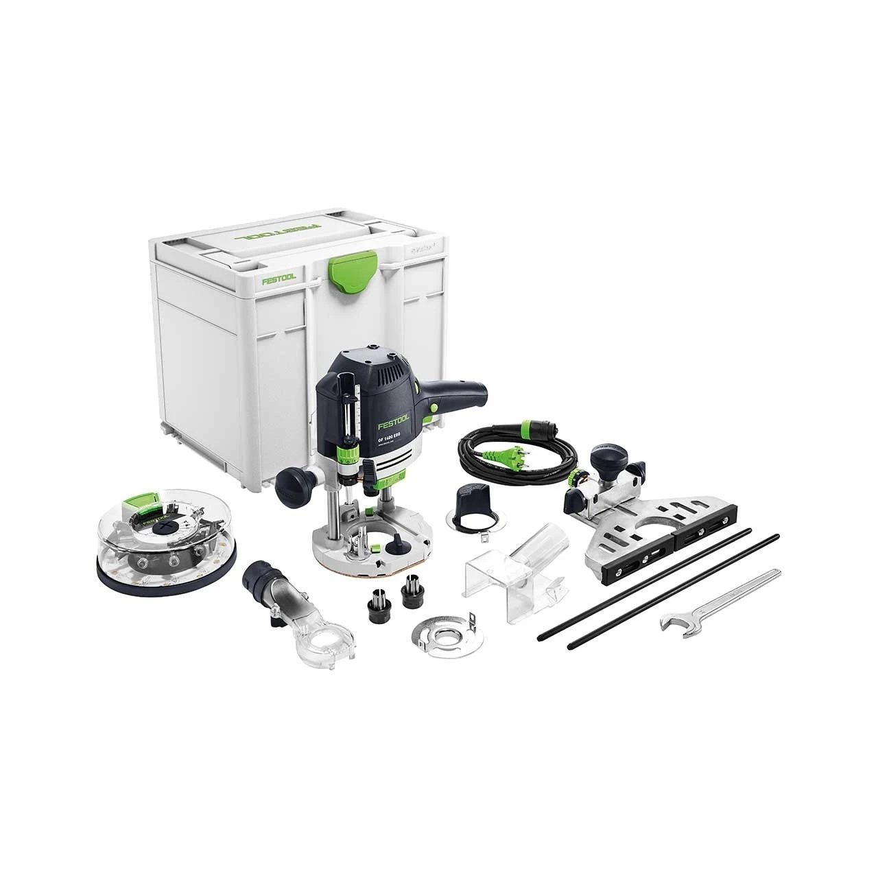 Spannzange Ø 8 mm, Spannzange Ø 12 mm, Seitenanschlag mit Feineinstellung, Kopierring Ø 30 mm, Absaughaube oben, Spanfänger, Fräserbox, Gabelschlüssel SW 24, Systainer SYS3 M 337